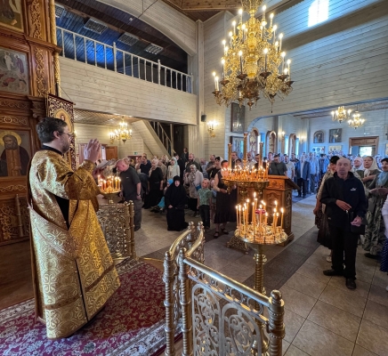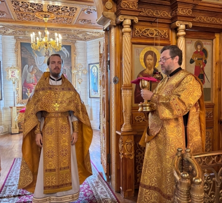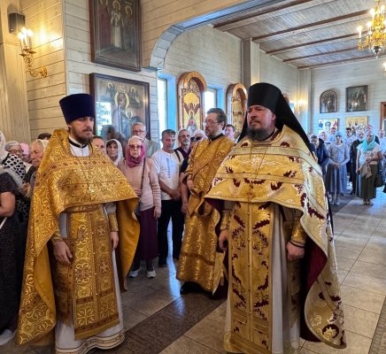 Божественную Литургию совершил иеромонах Георгий (Карпов), ему сослужили иерей Михаил Лазарев и диакон Андрей Капралов. По окончании богослужения клирики храма совершили молебное пение Владимирской иконы Божией Матери. Богослужебные песнопения Знаменным распевом, исполнил любительский хор храма, под руководством Ларисы Николаевны Грищенко.