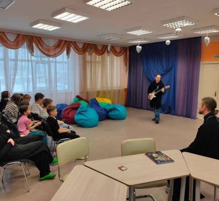 Отец Алексий поздравил ребят с православными праздниками января — Рождеством Христовым и Крещением Господнем, рассказал об их истории, смысле и значении. Руководитель молодежного отдела Симбирской епархии рассказал о деятельности движения «Симбирская православная молодежь» и предложил чаще проводить встречи, посвященные православным праздникам и экскурсии по храмам города. Александр Фельде сыграл на электрогитаре и исполнил несколько авторских музыкальных композиций.