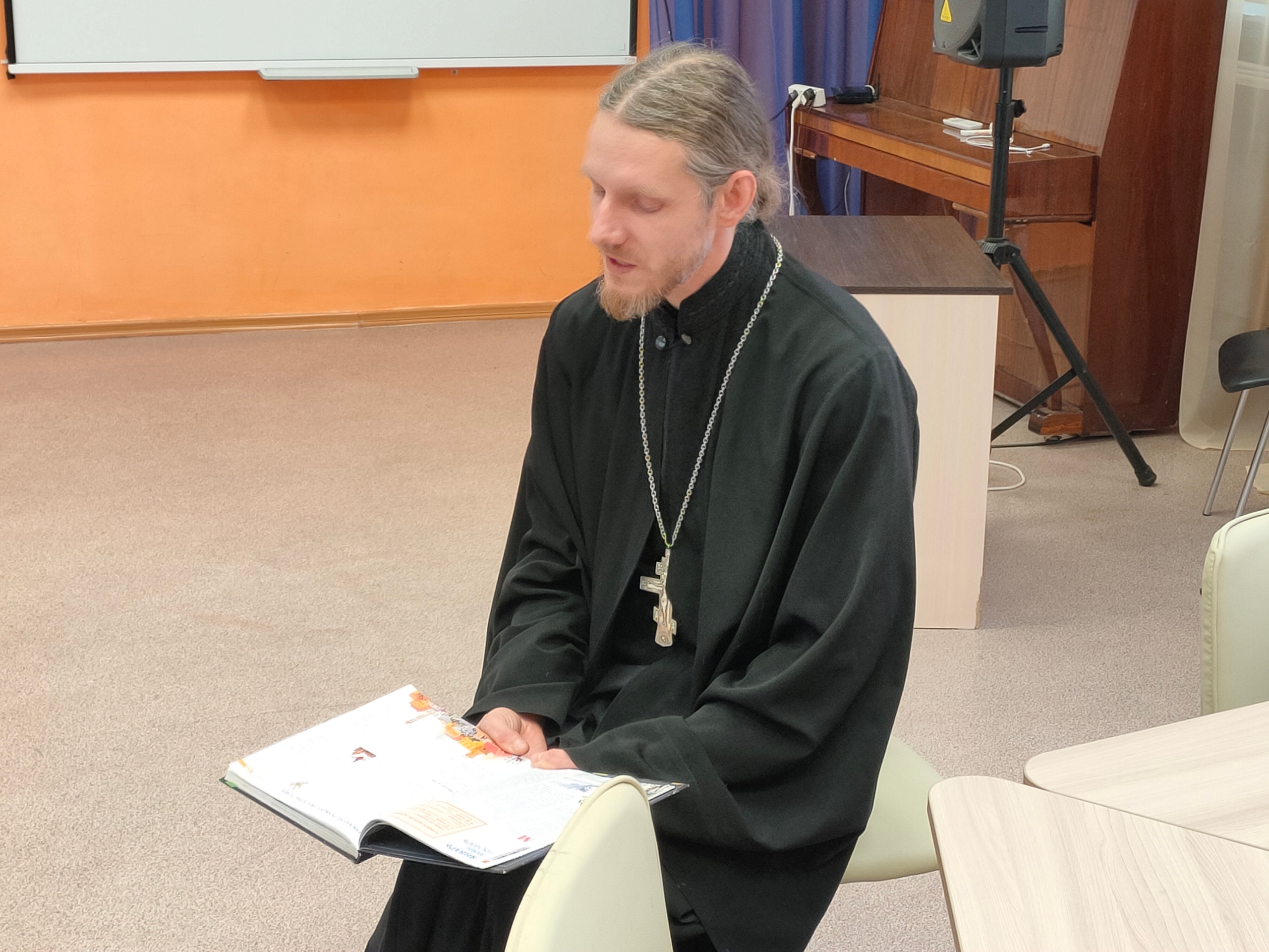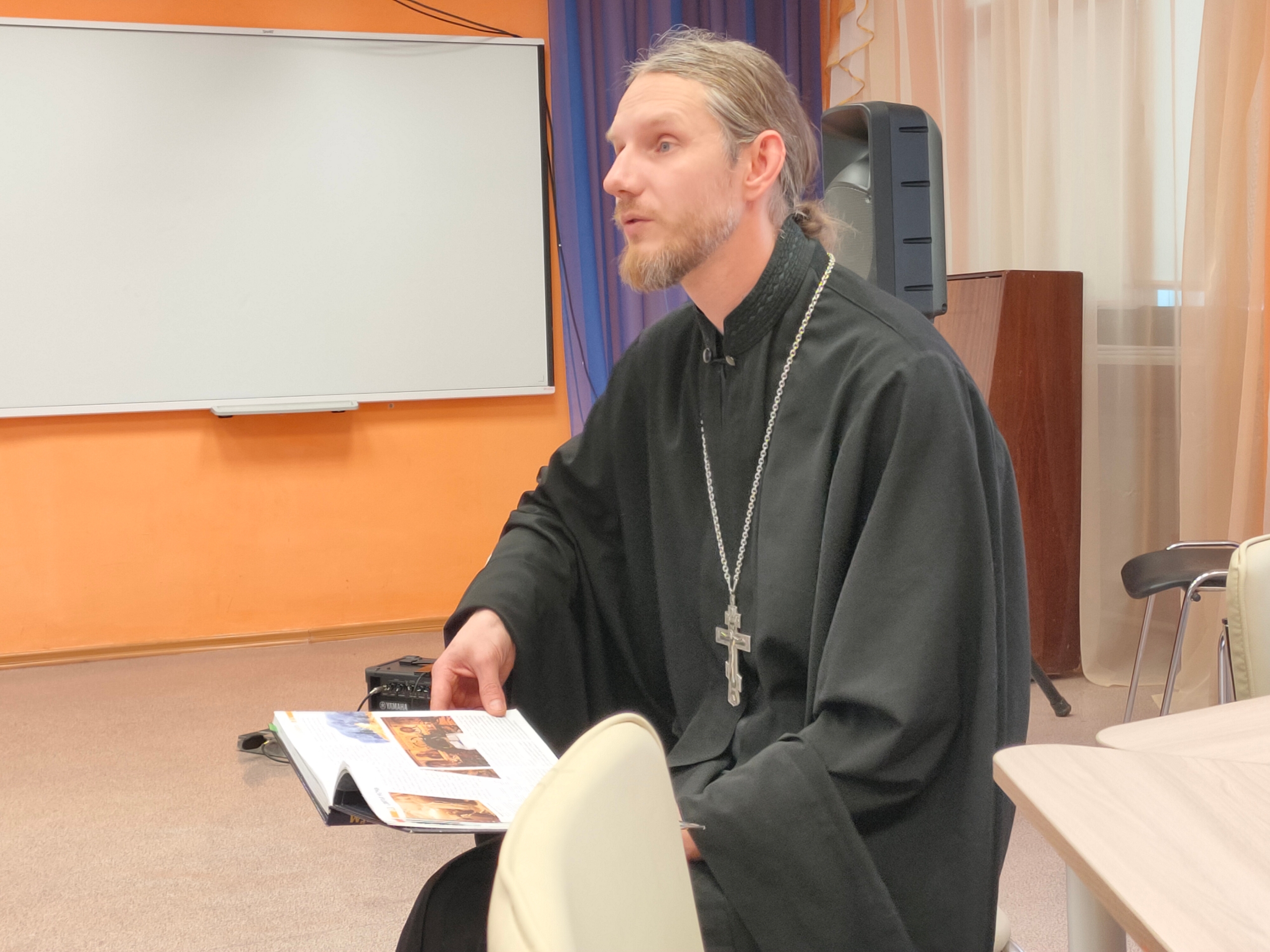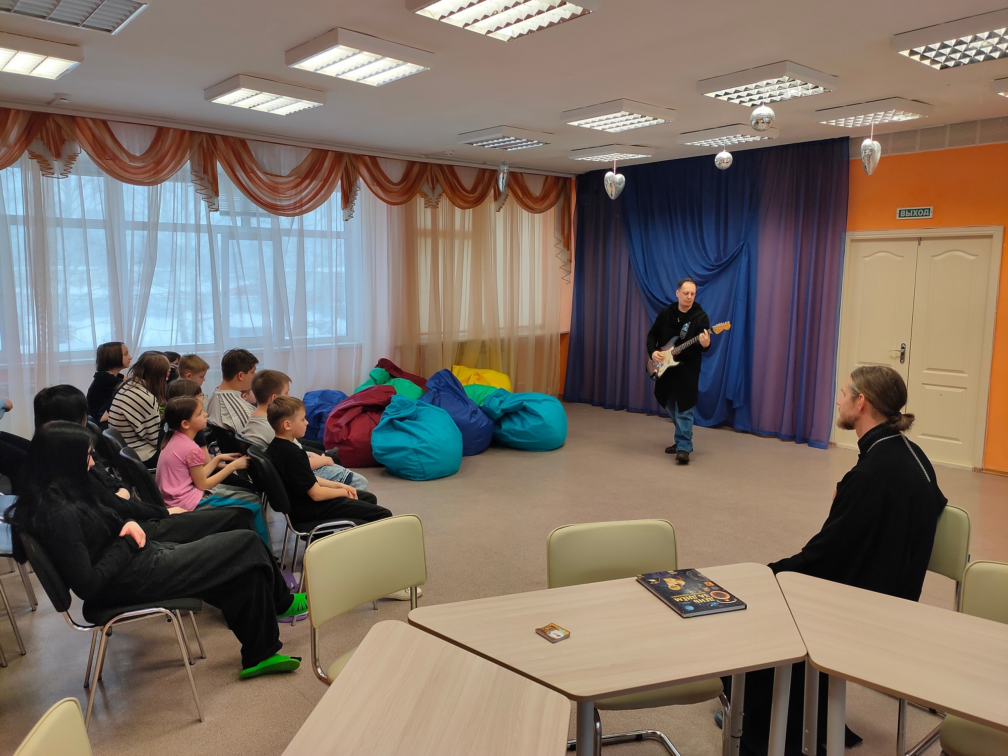 Отец Алексий поздравил ребят с православными праздниками января — Рождеством Христовым и Крещением Господнем, рассказал об их истории, смысле и значении. Руководитель молодежного отдела Симбирской епархии рассказал о деятельности движения «Симбирская православная молодежь» и предложил чаще проводить встречи, посвященные православным праздникам и экскурсии по храмам города. Александр Фельде сыграл на электрогитаре и исполнил несколько авторских музыкальных композиций.
