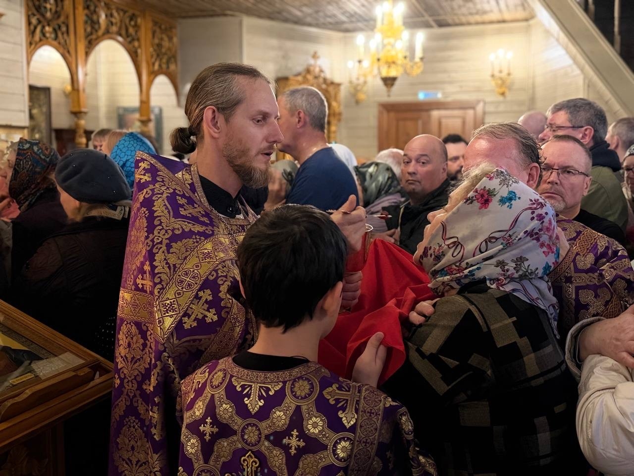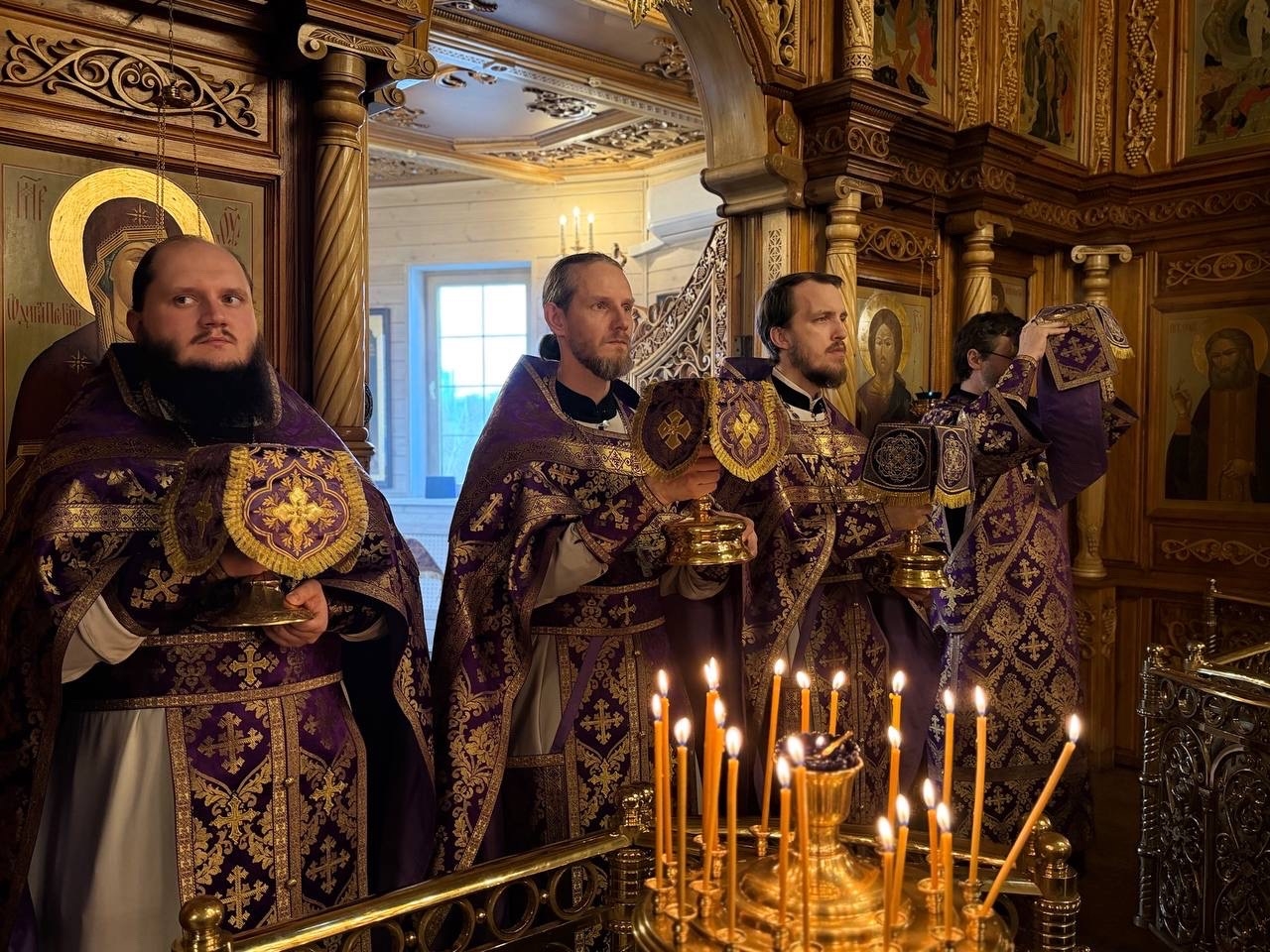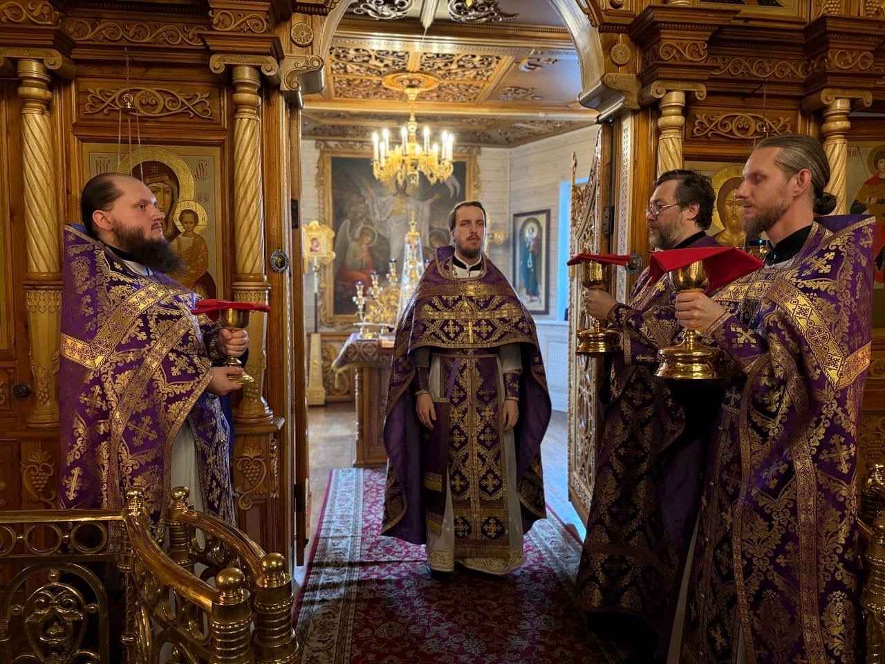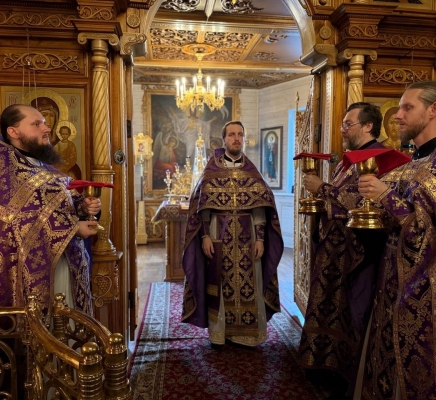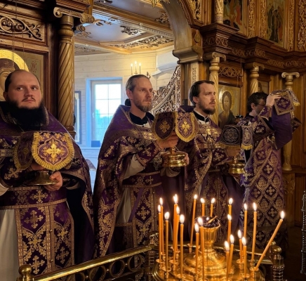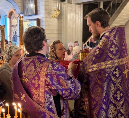 9 апреля, в Великий Четверток, в Воспоминание Тайной Вечери, совершена Великая вечерня в соединении с Литургией Василия Великого. Богослужение возглавил иерей Михаил Лазарев, ему сослужили иерей Алексий Паплевка, иерей Александр Майоров и диакон Андрей Капралов.