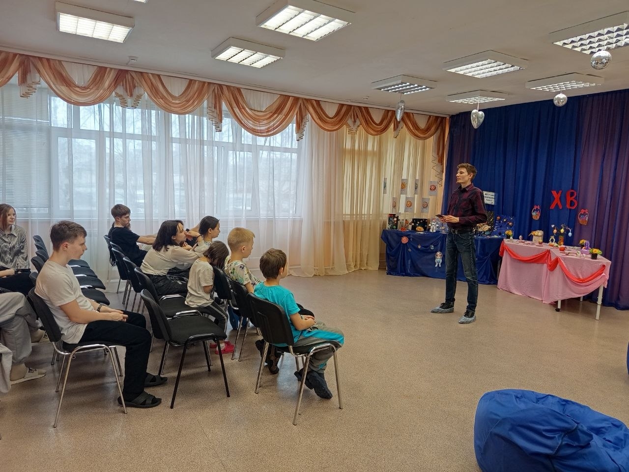 Руководитель отдела по работе с молодежью Сергей Николаев также поздравил ребят и рассказал им о великой святыне — Благодатном огне из Иерусалима, а также прочел стихотворение Аполлона Майкова «Христос воскрес!»
